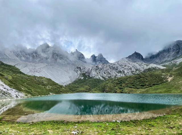 在原始森林中,山谷尽头的一个天然高山牧场,天宝雪山最美的一个高山湖泊就静静地躺在在牧场中,湖水泛出浓艳的异彩,清澈无染。湖面往上是苍翠浓郁的森林,森林再往上是一列巍峨险峻的雪峰,夕阳的映照下,整列雪峰更呈现出一种金红色的神秘光芒,美艳无比。一幅与世隔绝的醉人的雪山风景画就在我们的营地周围慢慢展现。
