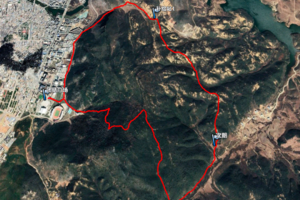 路线说明:从民族体育中心团结广场启动仪式现场出发,沿着东内环路向北,到龙潭边背水处位置沿小路上山,经过白塔垭口、牧场到土公路尽头,顺山梁下坡经山涧、山梁至次朗村,然后穿过草场往养殖场方向,再上山山脊到山顶,然后沿着冰雪步道到达五凤山庙,然后沿着冰雪步道下山小路到体育中心,再沿着柏油路回到团结广场,用时预计3小时,个人组到达终点必须有3个点的打卡记录。