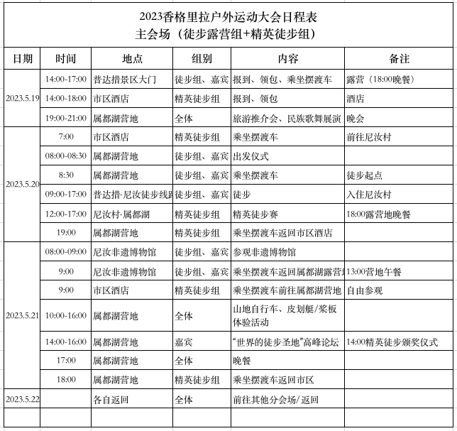 1、赛事名称:2023年香格里拉户外运动大会精英徒步组