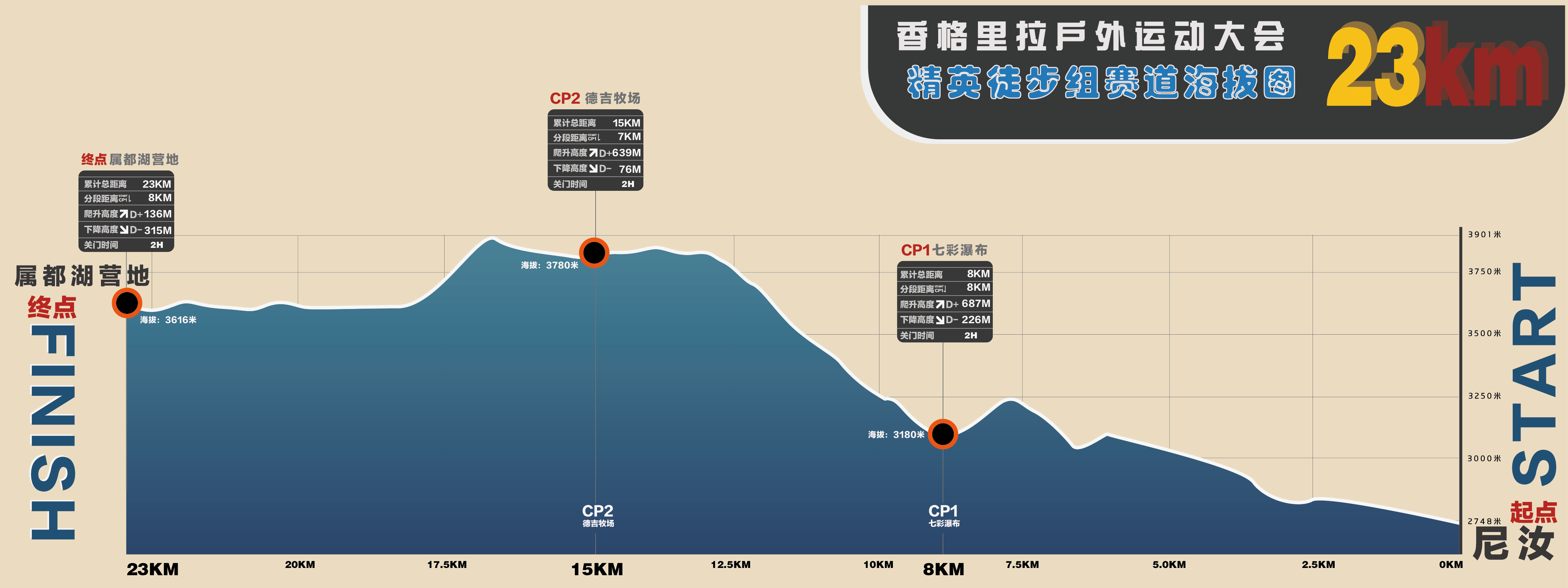 精英徒步组:(男女个人赛),距离:23公里